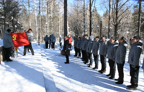 接下來,支部書記帶領(lǐng)黨員們面向黨旗,舉起右拳,對(duì)黨忠誠、永不叛黨的錚錚誓言在黑河密營中久久回蕩。最后,本次活動(dòng)在《沒有共產(chǎn)黨,就沒有新中國》的嘹亮歌聲中結(jié)束。