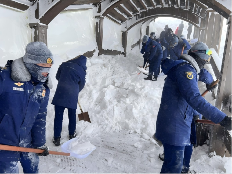 當(dāng)各責(zé)任區(qū)全線貫通,候車回廊、登山臺階顯露出真容,兩側(cè)近2米高的雪墻和那早已被汗水浸濕又凍結(jié)成冰的棉襖,已然成為長白山西南景區(qū)運營黨支部最鮮活的黨建成績單。